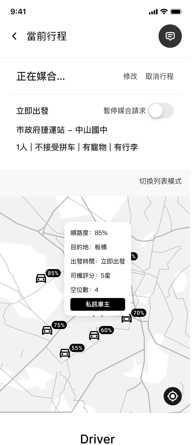 Metropia already had the technical infrastructure for real-time matching. The challenge wasn’t building the system. It was designing an experience that commuters would actually choose over a LINE group or a street corner queue.